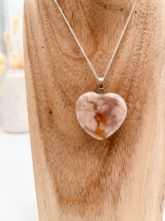 Wunderschöner 🌸🍒 Kirschblüten-Chalcedon 💖 Herz Anhänger, 925er Silber