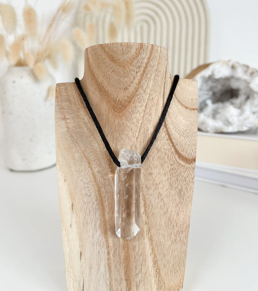 Bergkristall Rohspitze Anhänger an schwarzer Kordel