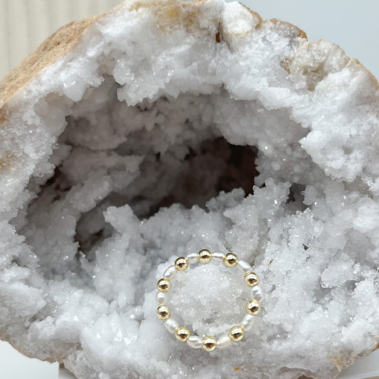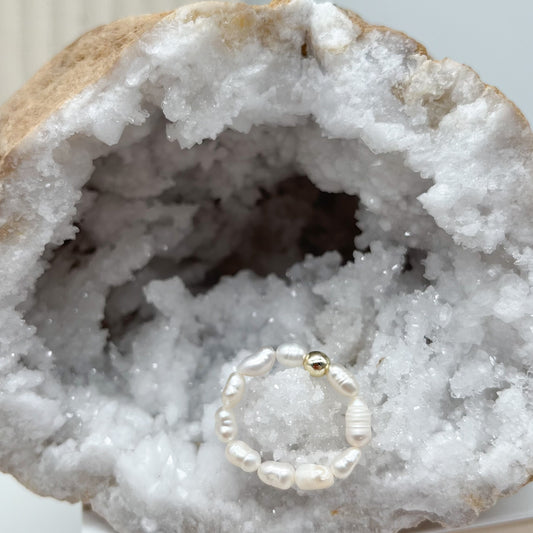 Süßwasserperle Ring mit goldfarbenen Elementen ☾ HANDMADE