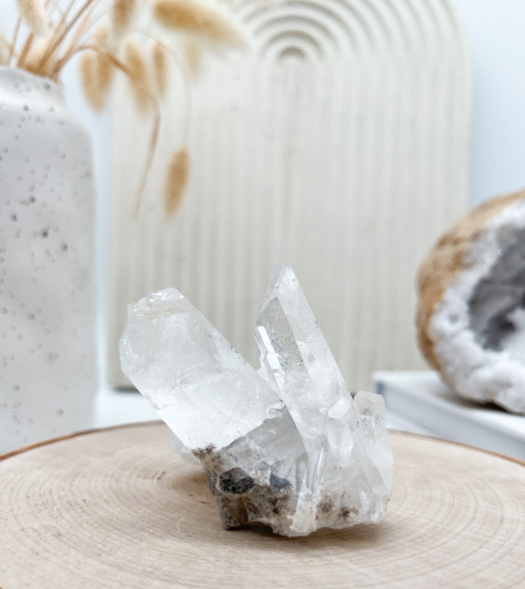 Außerdem bietet der Bergkristall ultimativen spirituellen, mentalen, emotionalen und physischen Schutz. Er stärkt die Struktur der Aura, sorgt für eine stärkere Präsenz und eine gute Anbindung an sein inneres Selbst und bringt deine Energien wieder ins Gleichgewicht. Er ist ein starker Verstärker in Verbindung mit anderen Edelsteinen und gleichzeitig ein Manifestationsstein, um deine Absichten kristallklar umzusetzen.