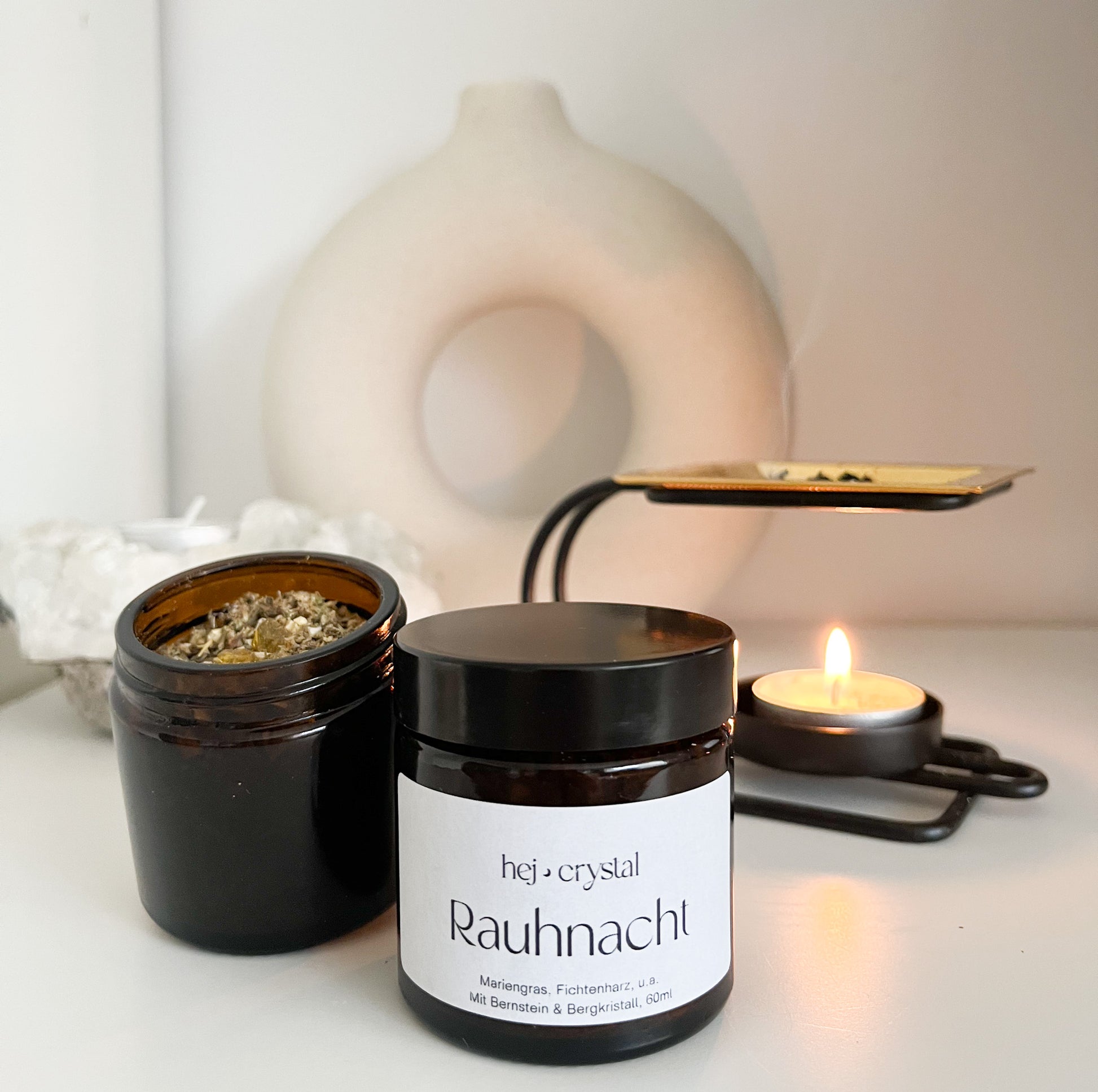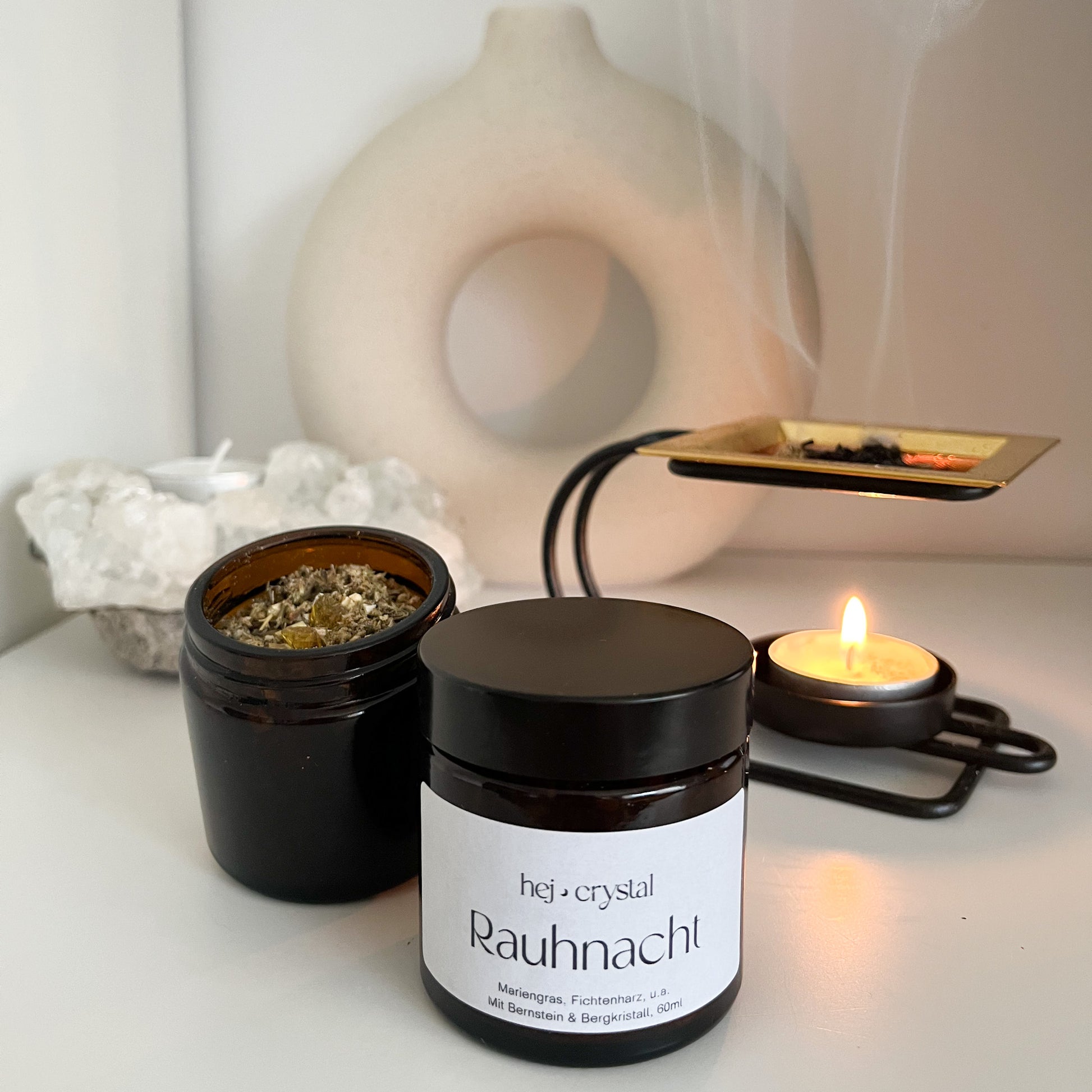 Diese wundervolle Räuchermischung, welche mit kleinen Edelsteinen versehen ist, ist dein idealer Begleiter, wenn du die heilige Zeit der Rauhnächte optimal für dich nutzen möchtest. Es unterstützt dich dabei, dich zu besinnen, in Kontakt mit deinen Ahnen zu treten, alte Energien hinauszuleiten und gleichzeitig das Positive willkommen zu heißen.