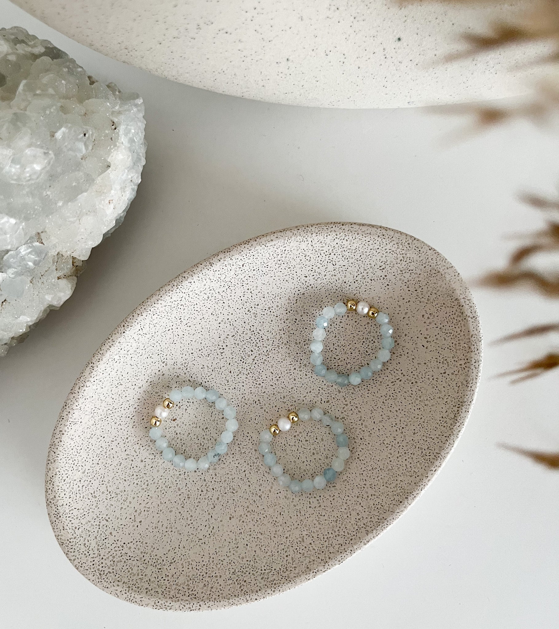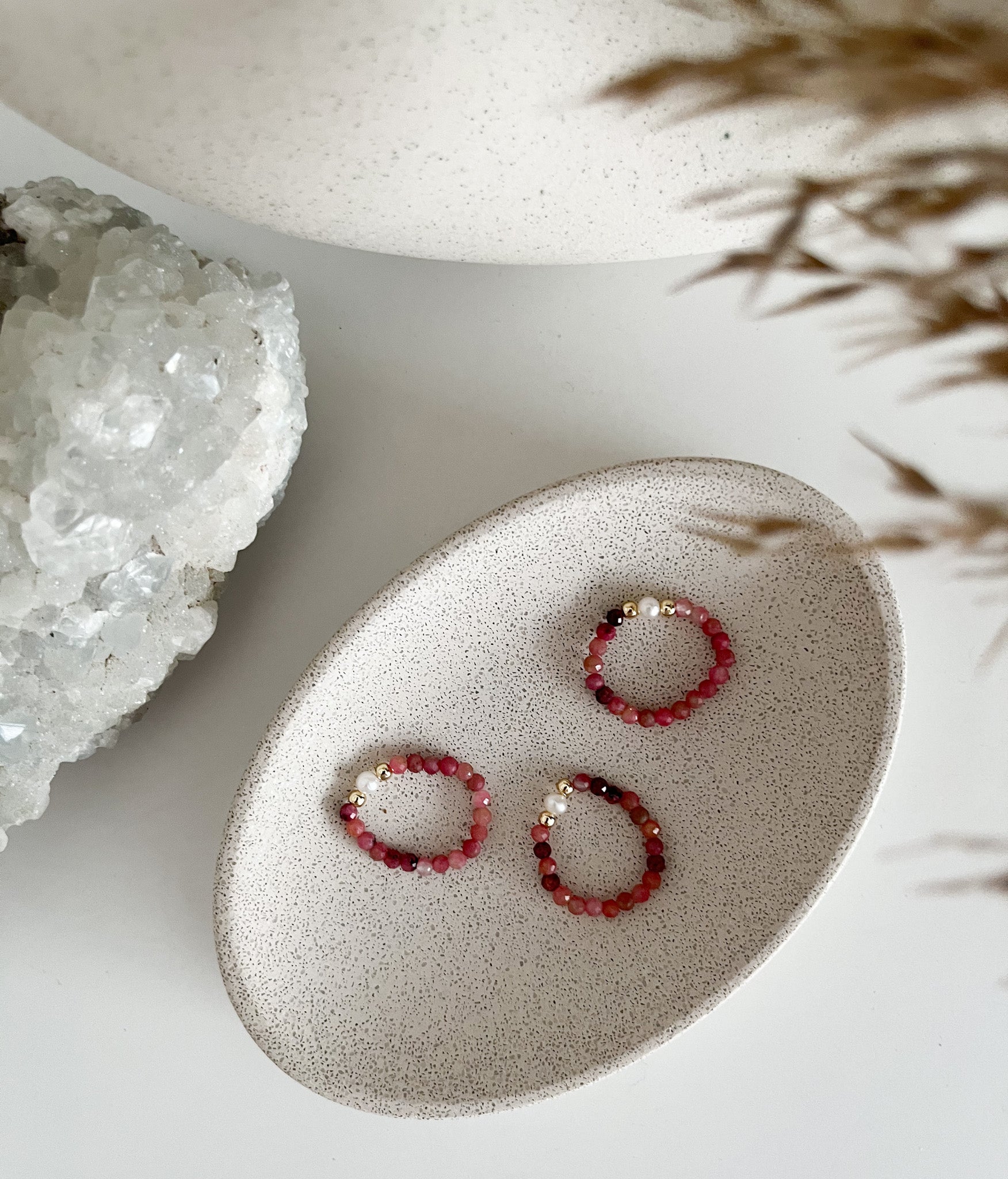 Elastikringe in verschiedenen Steinsorten mit Perle und goldfarbenen Elementen