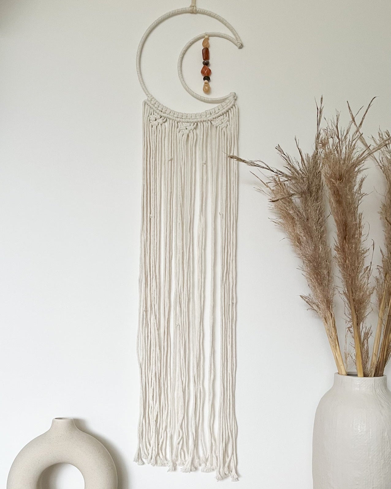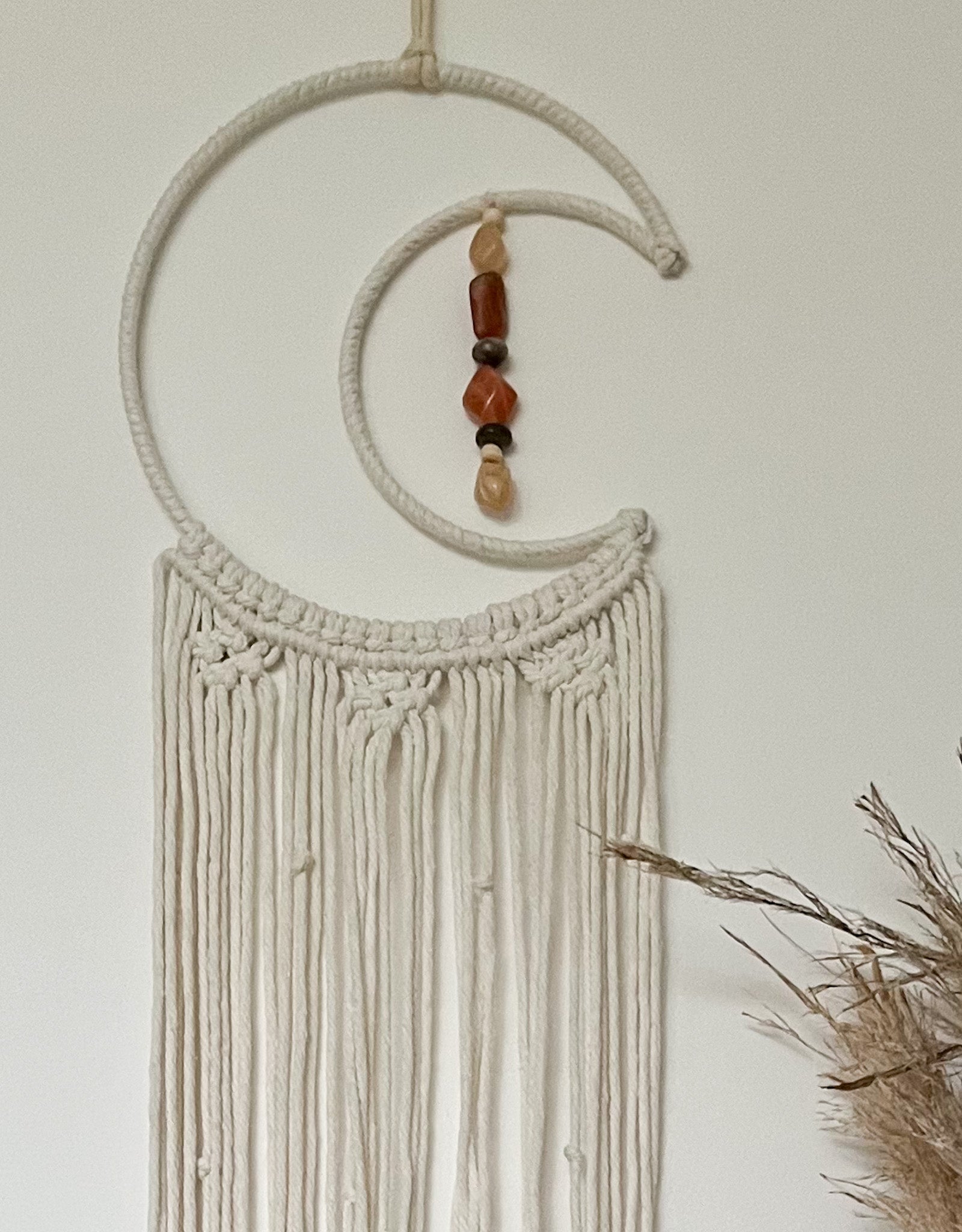 Ein Pranamee ist mehr als nur Dekoration. Die Kombination aus sorgfältig geknüpftem Makramee und der magischen Kraft ausgewählter Heilsteine erschafft ein wundervolles Element für dein Zuhause.