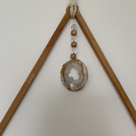Pranamee Holz Dreieck Achatgeode und Bergkristall Kugeln