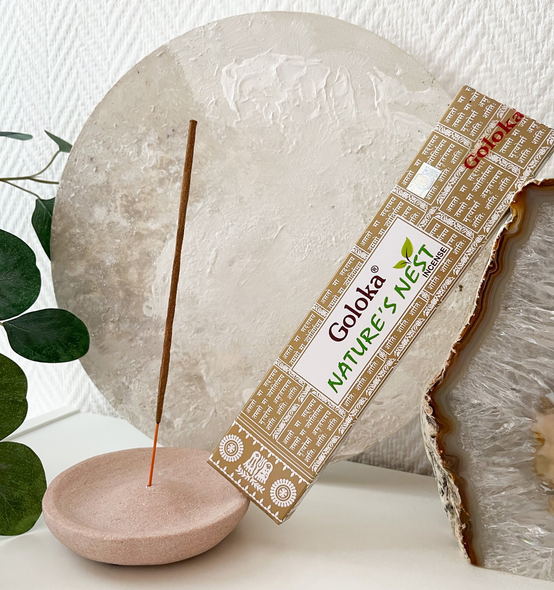 Die Goloka Nature's Nest ist eine der neuen Kreationen vom bekannten Hersteller der Goloka Nag Champa Räucherstäbchen. Goloka Nature's Nest besteht aus einer einzigartigen Mischung von seltenen Kräutern, Blumen, Honig, Harze und Öle. Der angenehme blumige Duft wirkt unterstützend für Yoga, Entspannung und Meditation, hilft aber auch das Raumklima und die Raumatmosphäre zu verbessern.