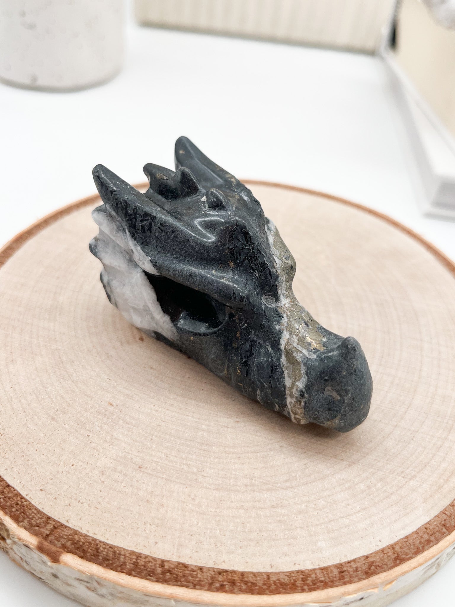 Toller Drachenkopf 🐉aus Schiefer mit Pyrit und Quarz, sorgt für innere Klarheit 💫u. Selbsterkenntnis